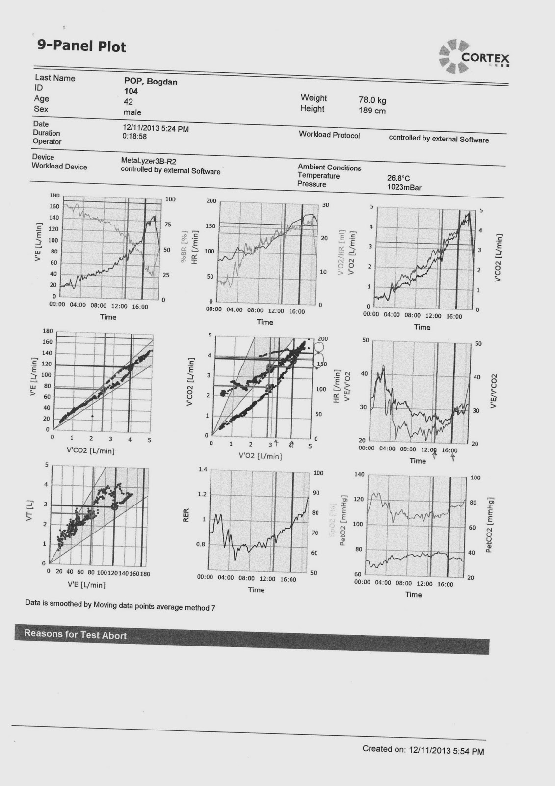 Profilul de efort a presupus, dupa o scurta perioada de mers usor, o inclinare a benzii concomitent cu o crestere a vitezei, in trepte.
