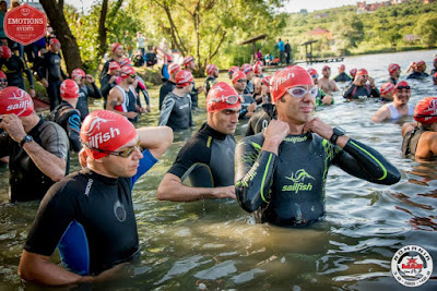 Inainte de cursa mi-a intrat in cap ideea asta stupida ca trebuie sa termin neaparat sub 6 ore. Nu stiu de ce, e un timp mediocru, te situeaza pe la mijlocul clasamentului (in Romania), dar mi se stantase treaba asta pe creier. Socoteala era simpla: 40-45 min inot, 3:15 bicla, si mai ramaneau 2 ore pentru alergare. Cu tranzitiile bagate pe acolo pe undeva.